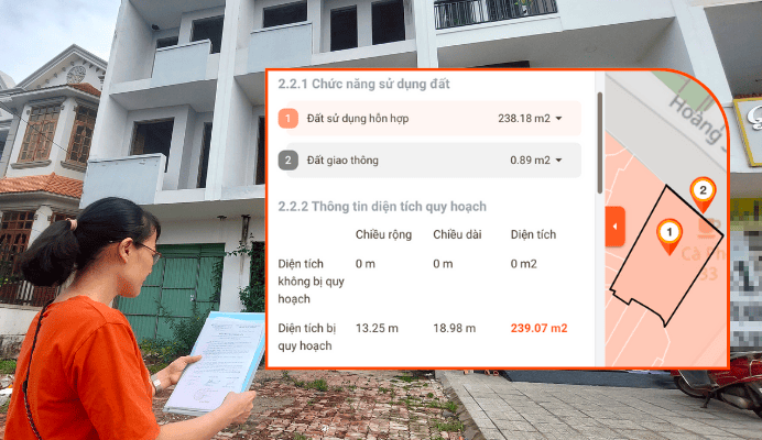 – Thông tin quy hoạch: đất thuộc loại quy hoạch gì? Có được xây nhà ở, kinh doanh không? Diện tích đất bị quy hoạch là bao nhiêu? Diện tích đất còn lại không bị quy hoạch là bao nhiêu? Lộ giới quy hoạch bao nhiêu?